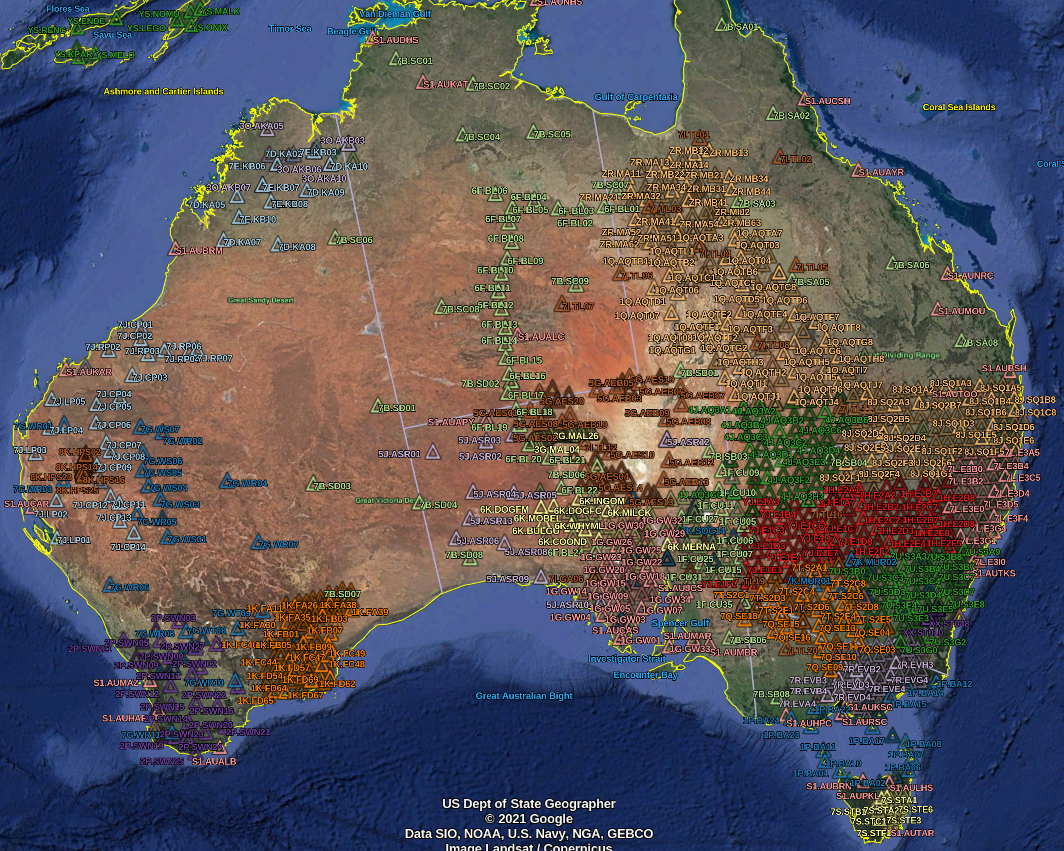 Contact usOur metadata archive provides location, hardware information, AND response information (via FDSN) for all seismic arrays currently distributed by AusPass. Time periods are indicated for each array to facilitate your search of data for a particular event (earthquake, explosion, etc.). If you are already using AusPass, the DOI numbers given here are the appropriate references to cite (one for each array), but if none are available (yet) a reference to our webpage may be apropriate. The links listed here give a description of each seismic array including a map of stations. Alternatively a Google KML file for all networks can be downloaded HERE. The complete AusPass metadata can be accessed with the WebDC3 graphical explorer or with a standard FDSN request. (visit our metadata help page).